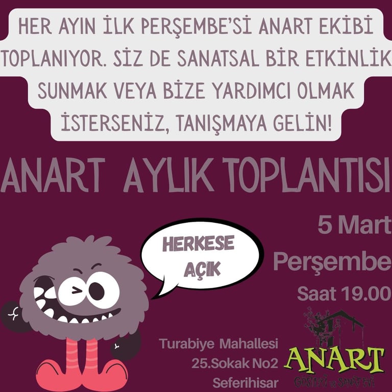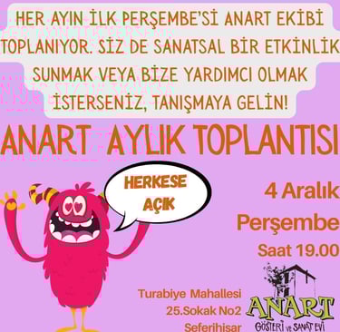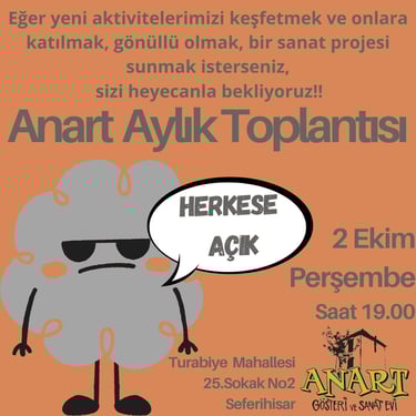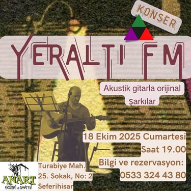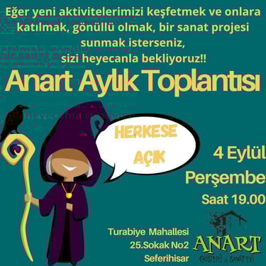 Seferihisar ve çevresinde, sanat dolu bir ortamda herkese açık etkinlikler düzenliyoruz.